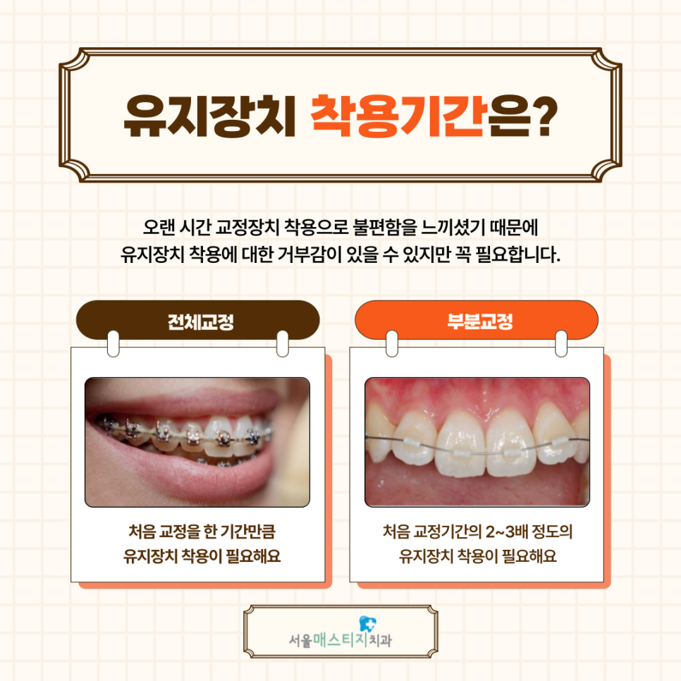 반포교정치과 전체교정과 부분교정, 유지장치 착용 기간이 달라요.
