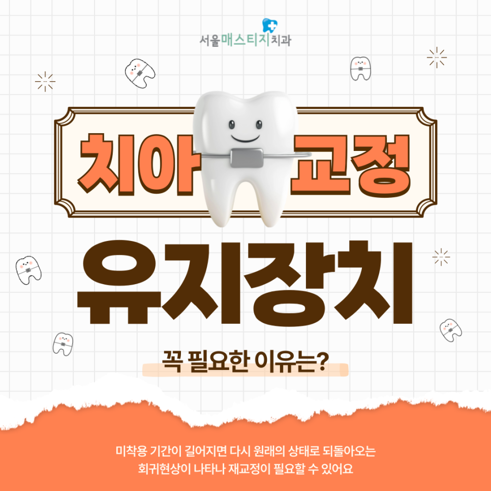 치아교정은 구강에 교정장치를 오랫동안 착용해야 하는 불편한 과정입니다. 오랜 시간에 걸쳐 이물감을 참아가며 가지런한 치아를 만들었는데, 얼마 지나지 않아 원상 복귀가 되면 스트레스가 심하겠죠.
