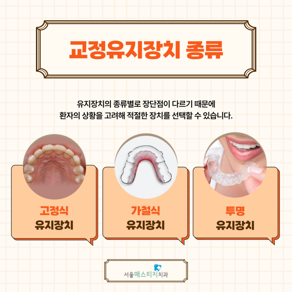 치과에서는 교정 장치를 제거한 후에도 유지장치를 장기간 착용하게 하는데, 유지 장치 착용을 하지 않으면 교정됐던 치아가 원래대로 돌아갈 위험이 있기 때문입니다.