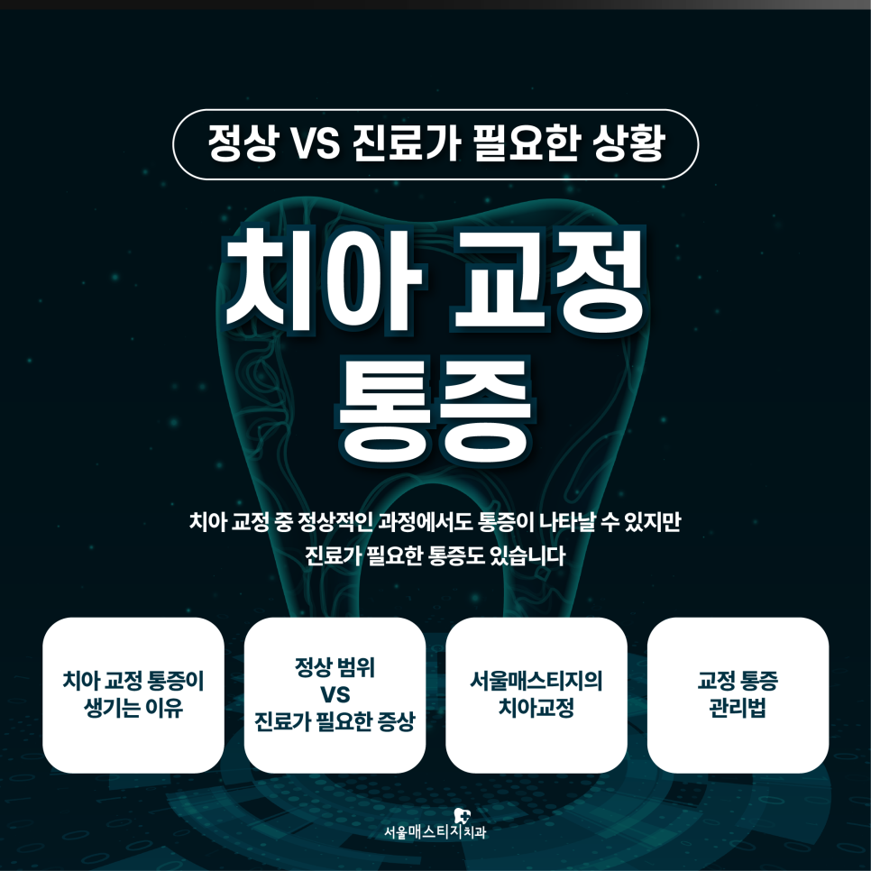 대부분 정상적인 과정에서 통증이 나타날 수 있습니다. 다만 관리로 충분히 줄일 수 있고 반대로 바로 점검이 필요한 통증 신호도 있죠. 오늘은 강남 인근에서 치아교정을 하는 서울매스티지치과에서 교정 통증이 생기는 이유부터 집에서 할 수 있는 관리법 진료를 받아야하는 경우까지 정리해드리겠습니다.