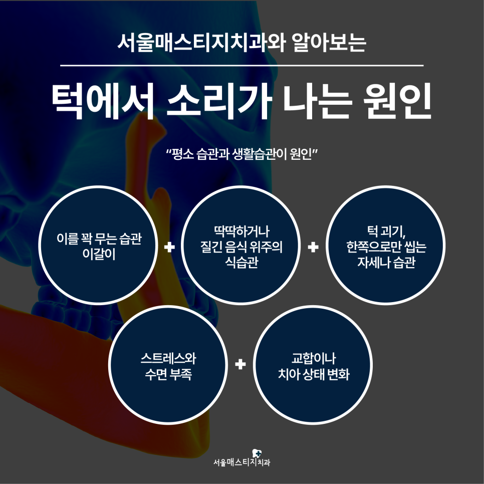 턱이 뻐근하고 소리가 나는 대표적인 원인